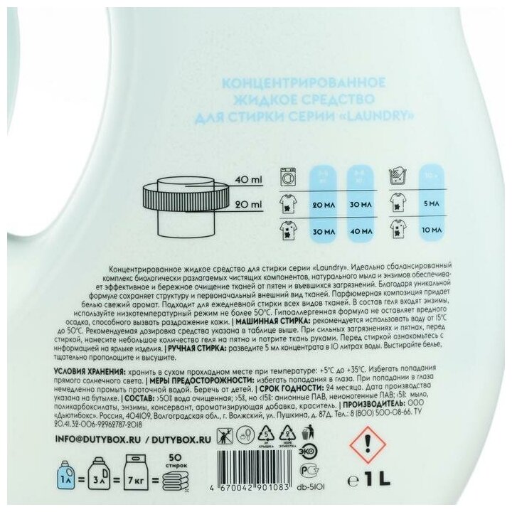 Купить Dutybox Гель для стирки. Суперконцентрат, 1л (50 стирок)