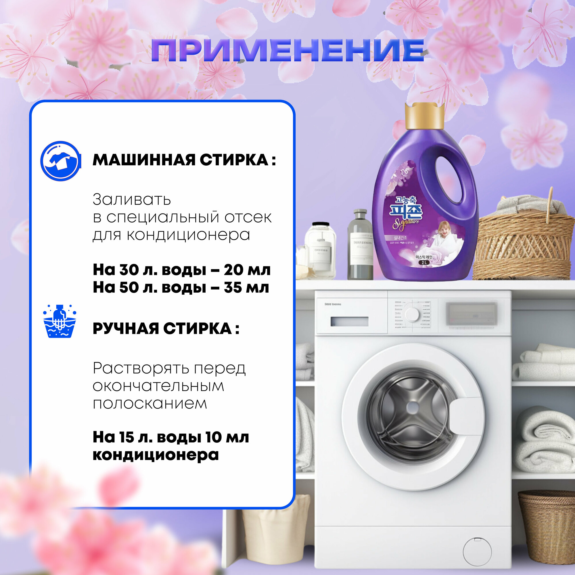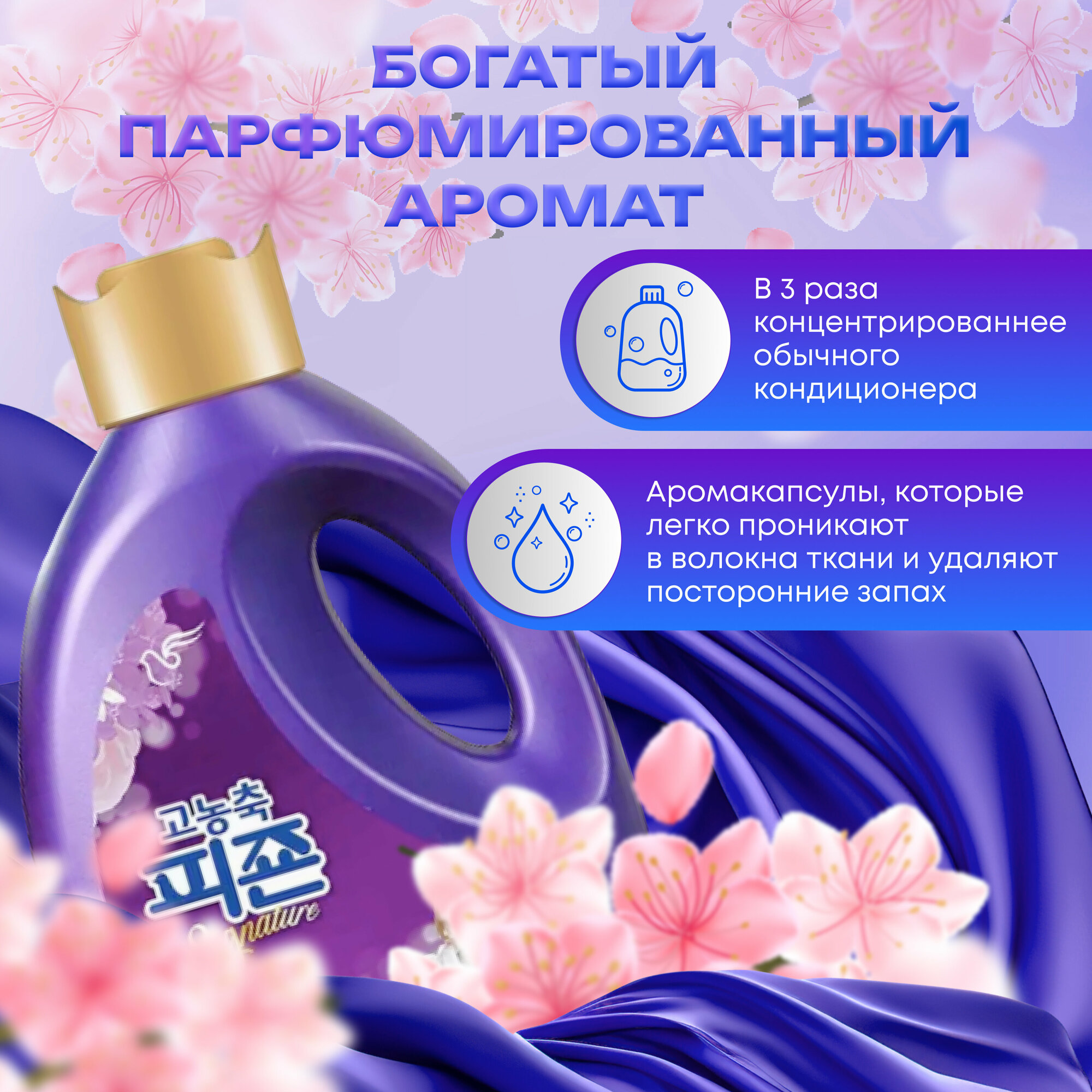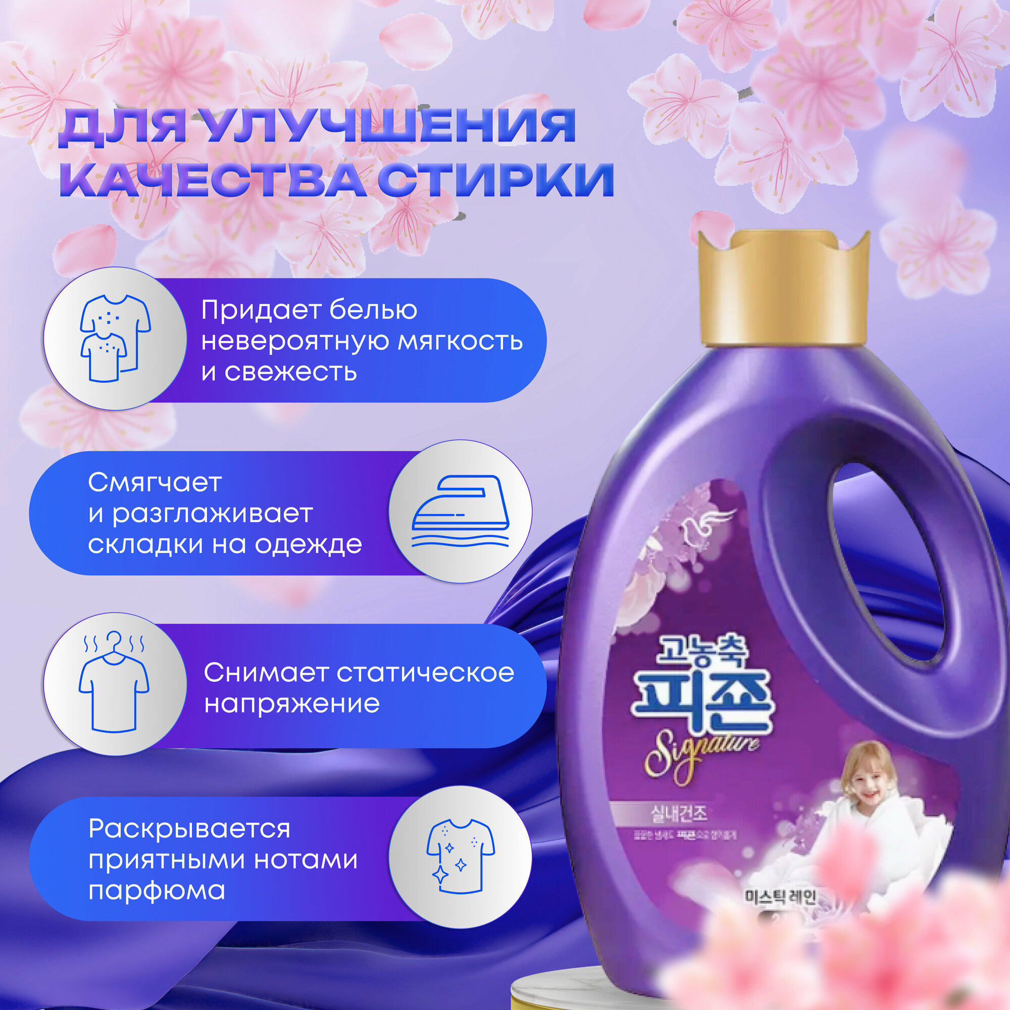 PIGEON RICH PERFUME (Mystic rain) Концентрированный кондиционер для белья с ароматом цветов яблони, персика, амбры и мускуса 1000мл