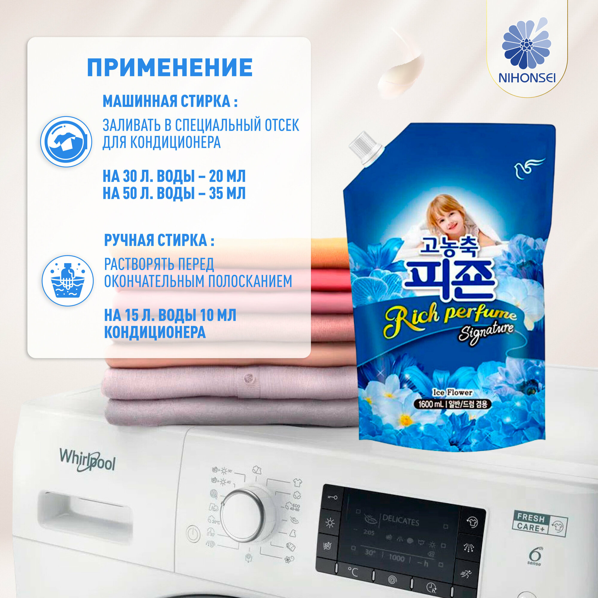 Кондиционер для белья Rich Perfume Signature Hi-Enriched Fabric Softener Ice Flower, PIGEON 1000 мл
