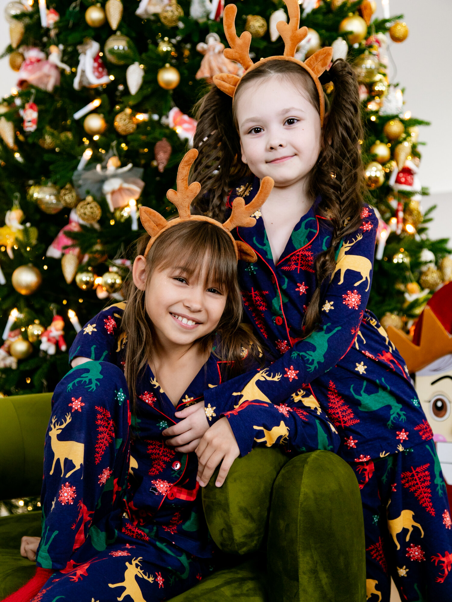 Пижама Веселый Малыш Snowy Deer, размер 128, синий/красный/желтый