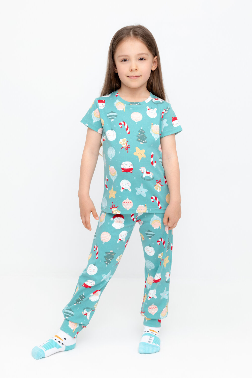 Пижама crockid К 1597/пыльная бирюза,игрушки на елку, размер 60/116, бирюзовый