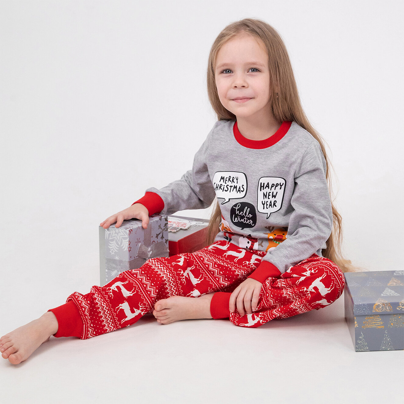 Пижама Happyfox Детская, размер 122, серый, красный интересное: