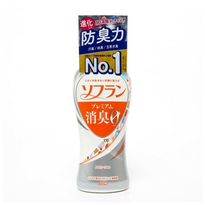 LION Кондиционер для белья SOFLAN (защищающий от неприятного запаха до самого вечера Premium Deodorizer Zero- натуральный аромат цветочного мыла) 550 мл