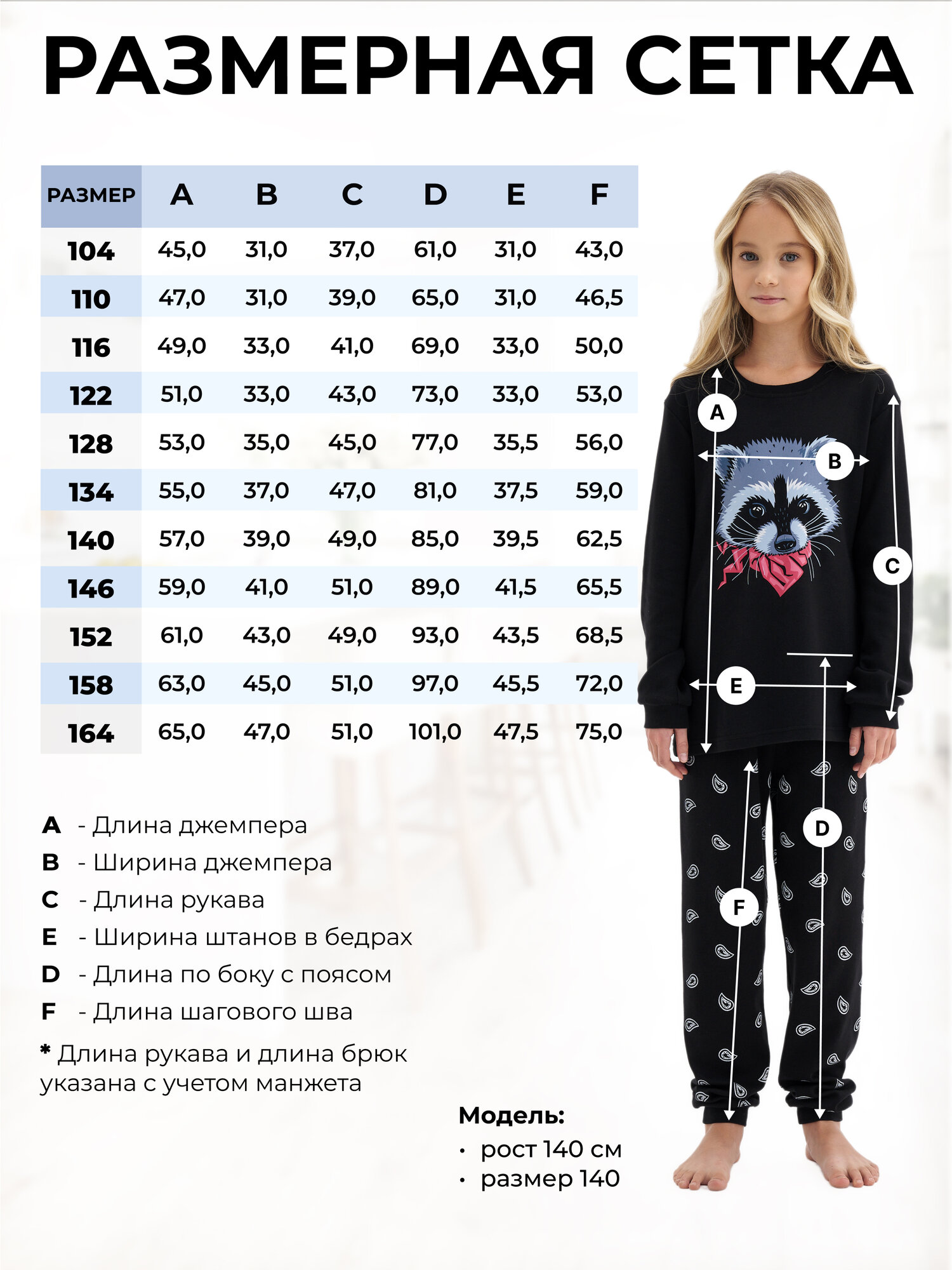 Пижама Kogankids Family look, размер 146 / 11 лет, черный