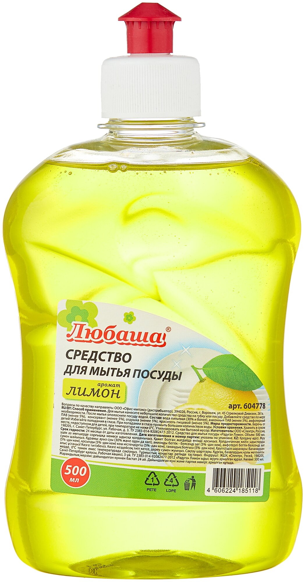 Купить Средство для мытья посуды 500 мл, любаша "Лимон", пуш-пул, 604778