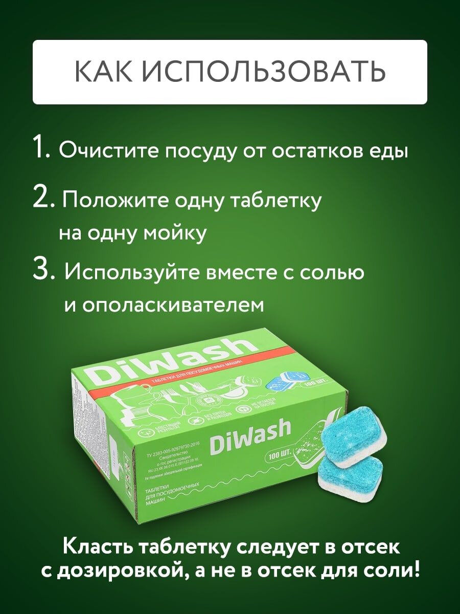 Таблетки для посудомоечных машин 100 штук, DIWASH В комплекте: 1шт.