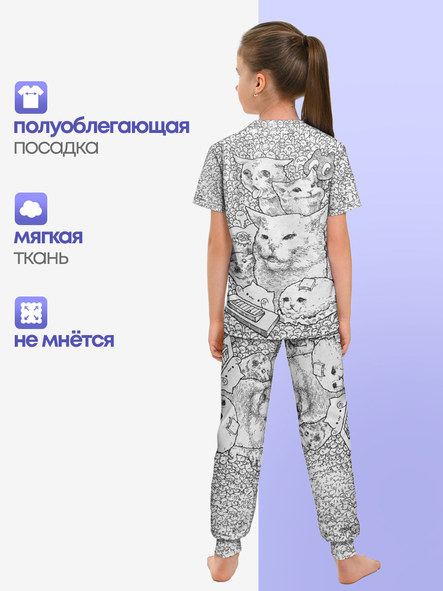 Пижама Lacotton.ru Кот-мем, размер 146, мультиколор