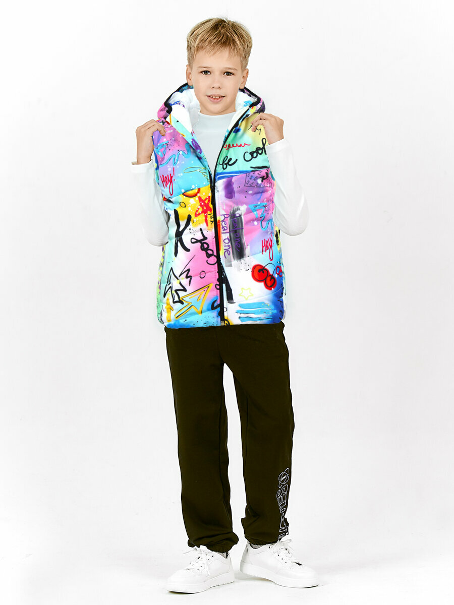 СохранитьЖилет KETMIN детский с капюшоном демисезонный, размер 146, мультиколор, бирюзовый интересное: