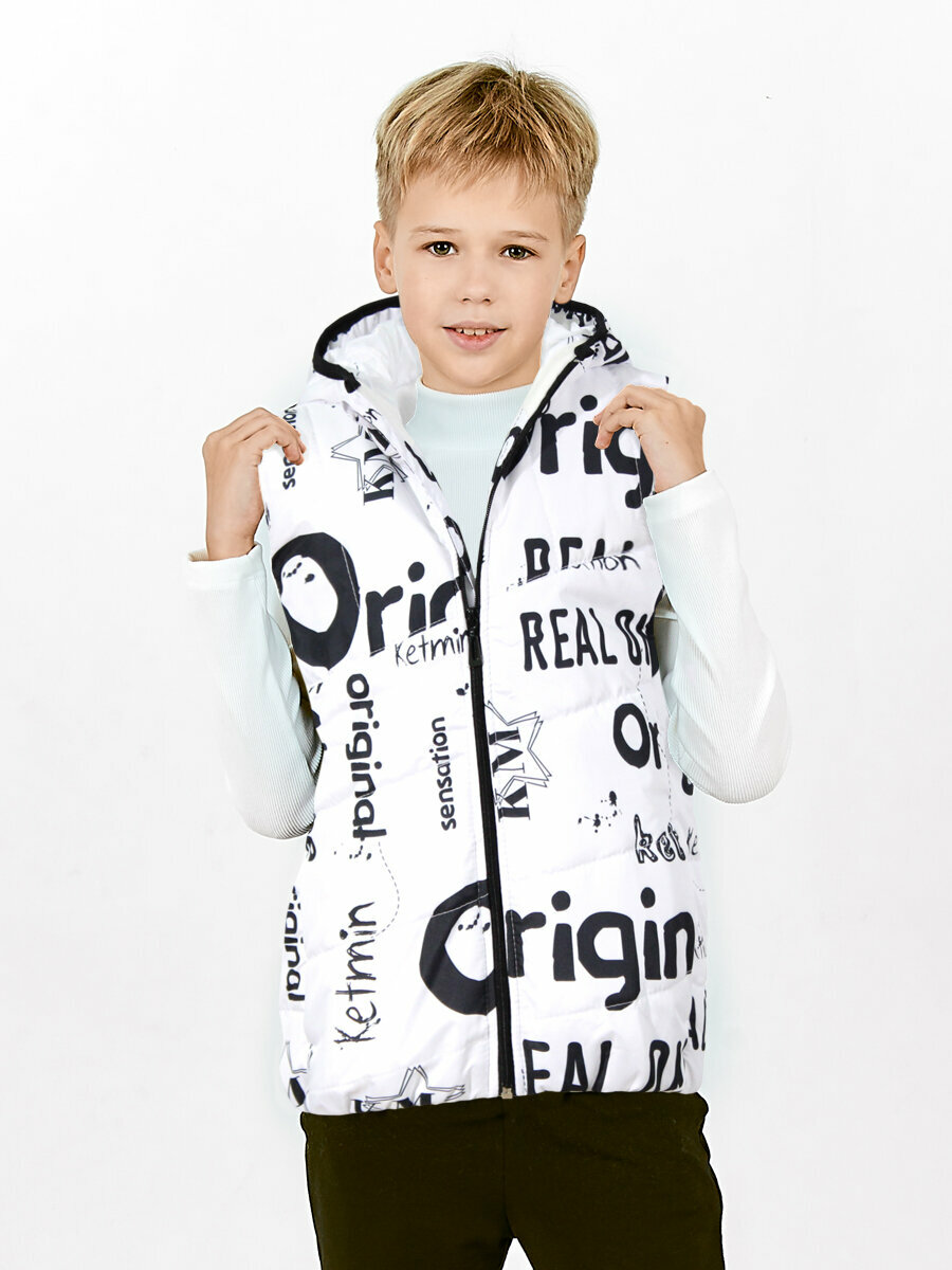 Жилет KETMIN детский с капюшоном демисезонный, размер 122, белый