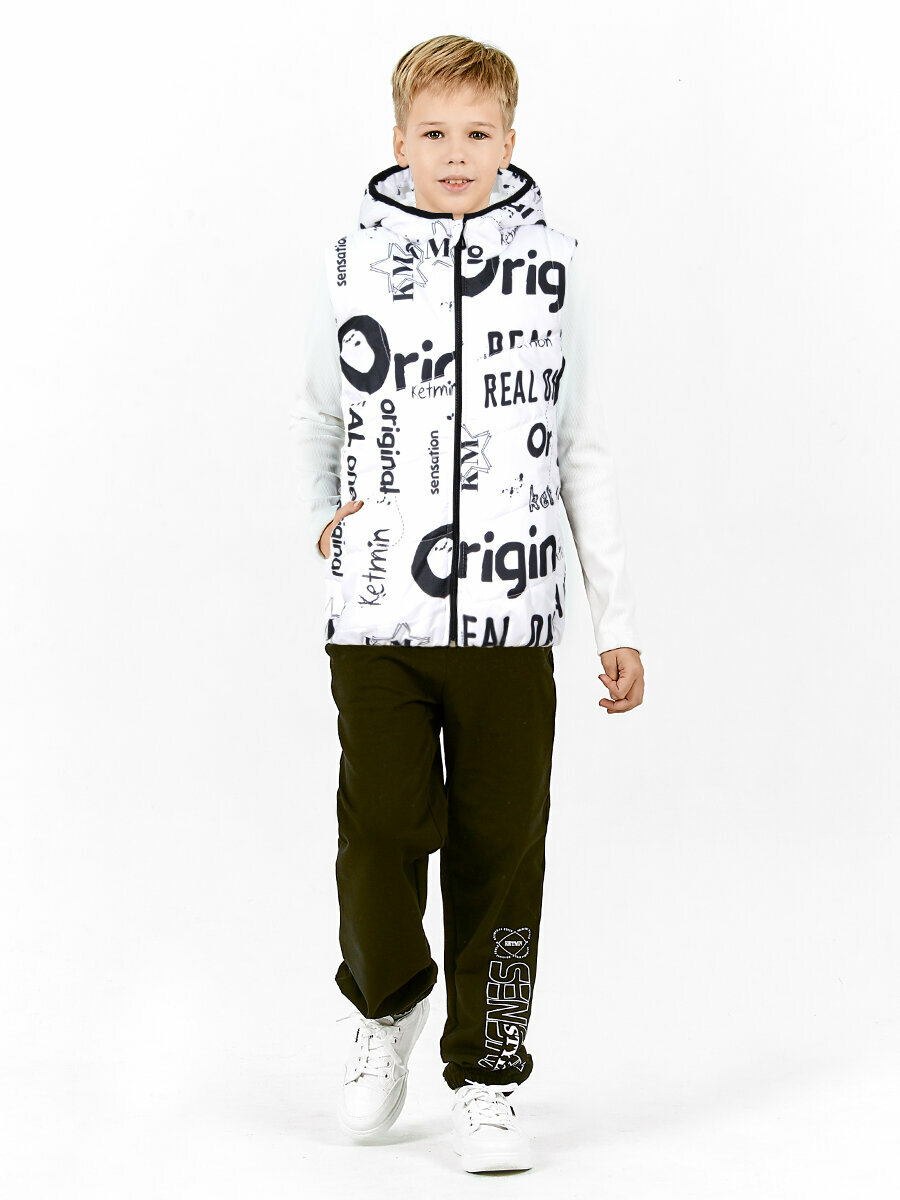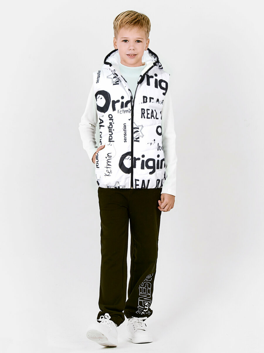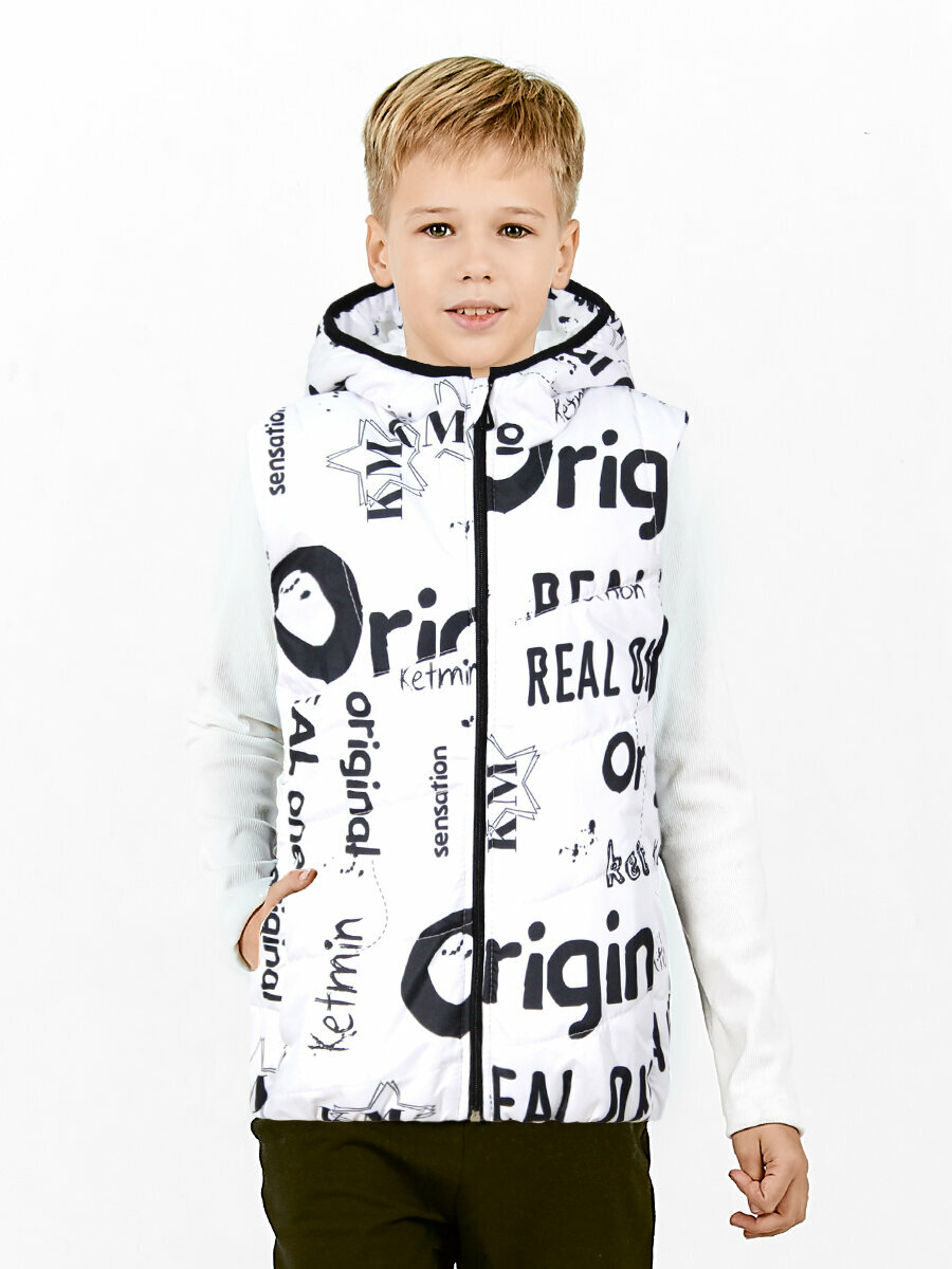Жилет KETMIN детский с капюшоном демисезонный, размер 128, белый