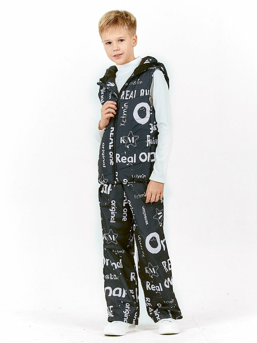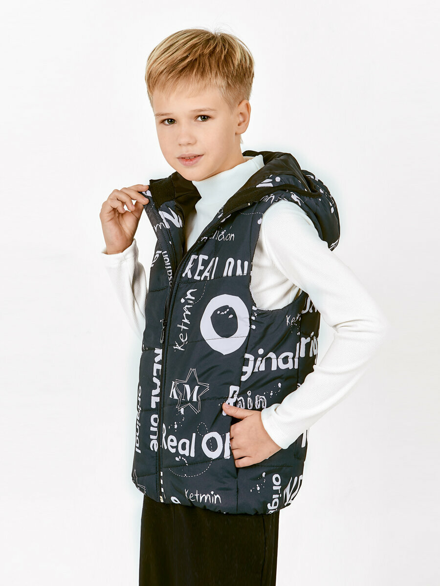 Жилет KETMIN детский с капюшоном демисезонный, размер 128, черный