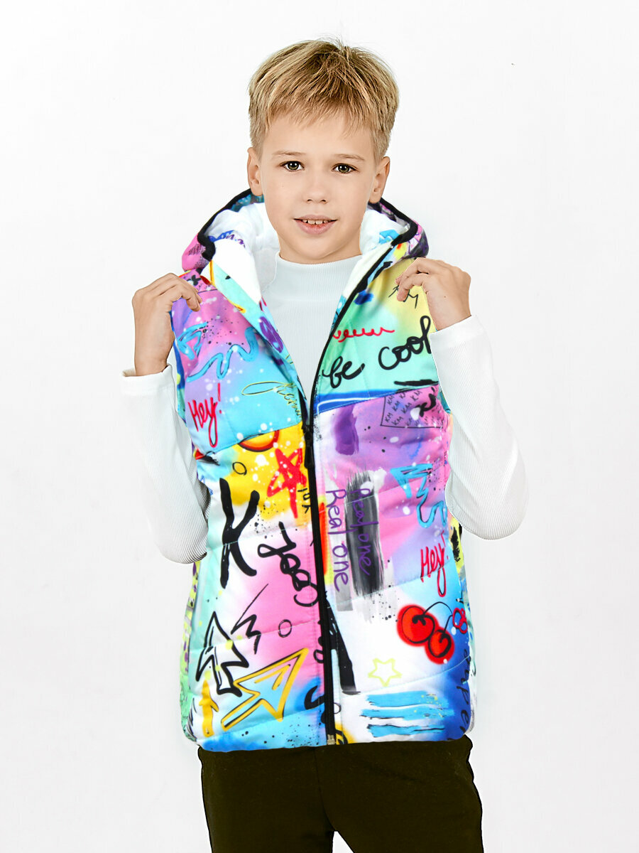 Купить Жилет KETMIN детский с капюшоном демисезонный, размер 128, мультиколор, бирюзовый
