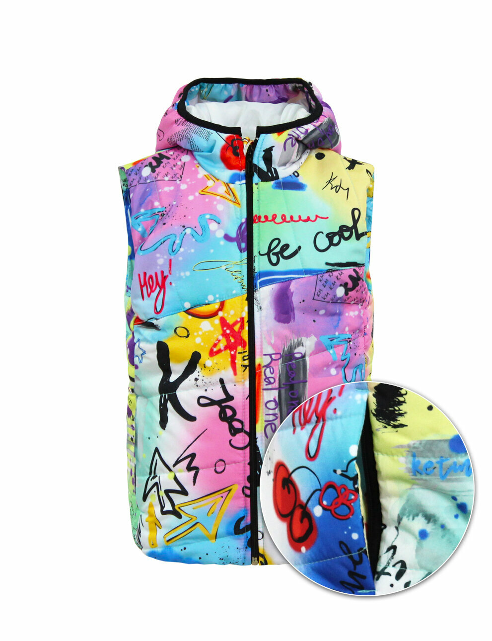 Жилет KETMIN детский с капюшоном демисезонный, размер 110, мультиколор, бирюзовый