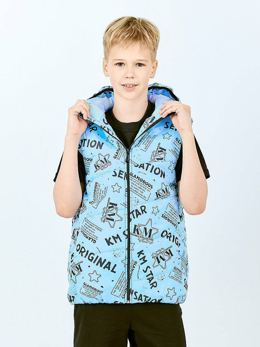 Жилет KETMIN детский с капюшоном демисезонный, размер 134, голубой
