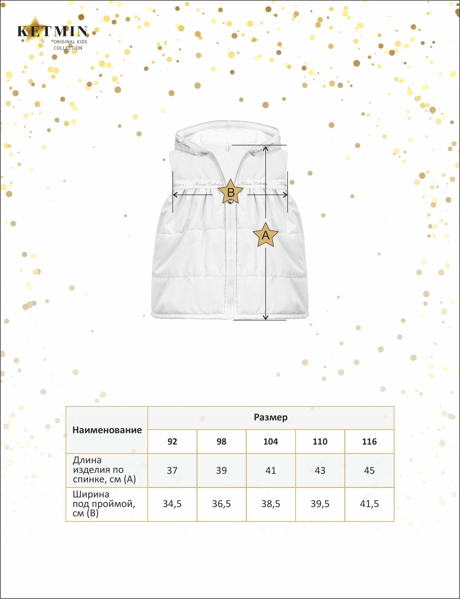 Жилет KETMIN детский с капюшоном демисезонный, размер 122, белый