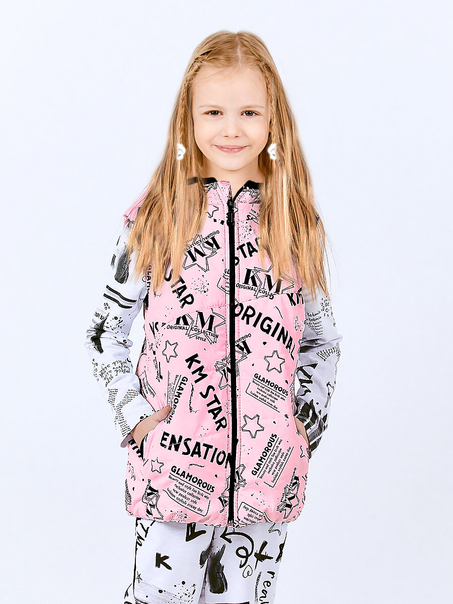 Жилет KETMIN детский с капюшоном демисезонный, размер 122, розовый