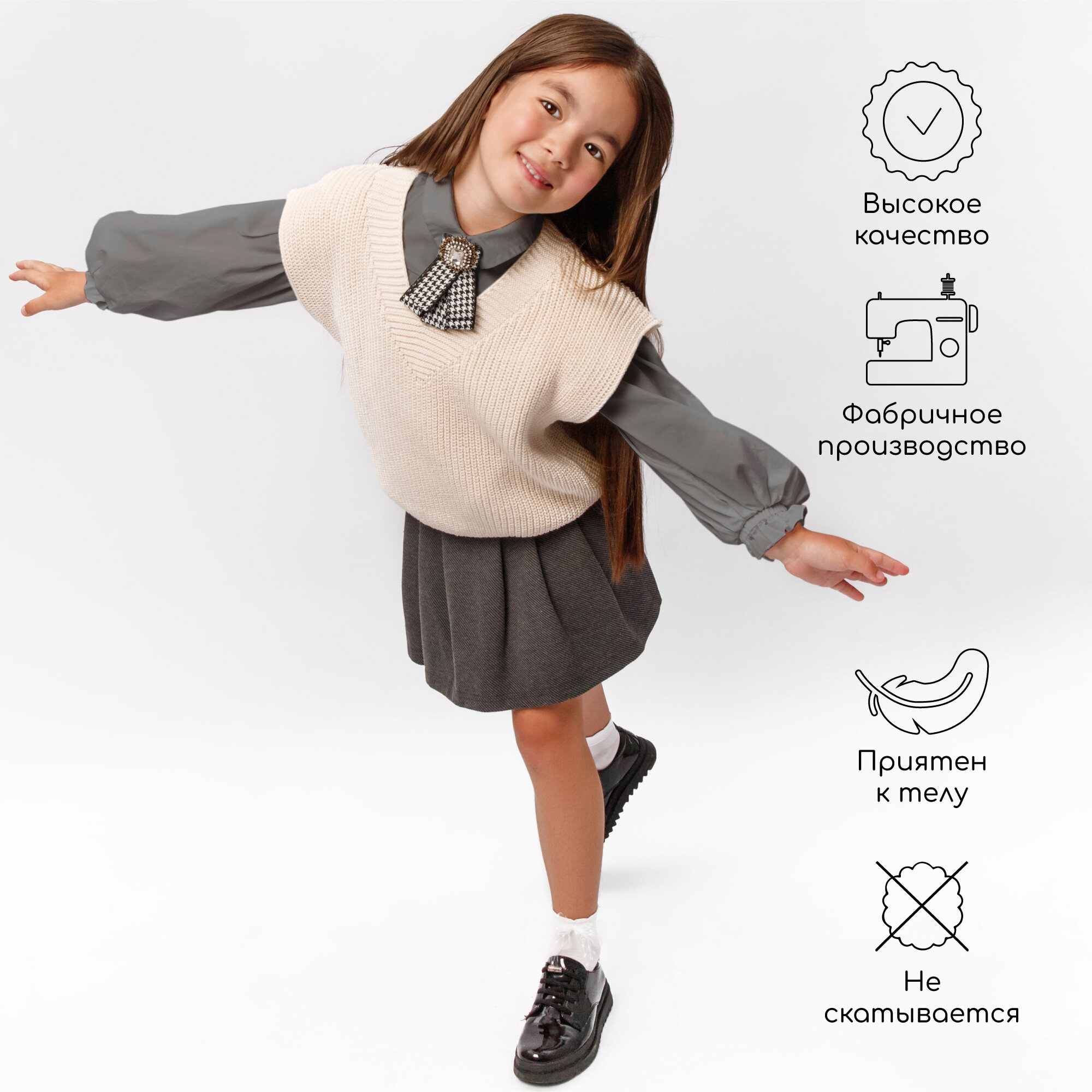 Школьный жилет Amarobaby, размер 122, молочный