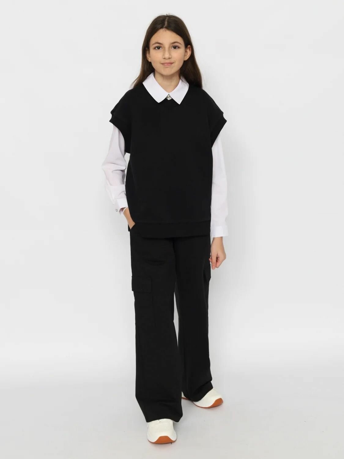 Школьный жилет cherubino Базовая коллекция, размер 146-76, черный