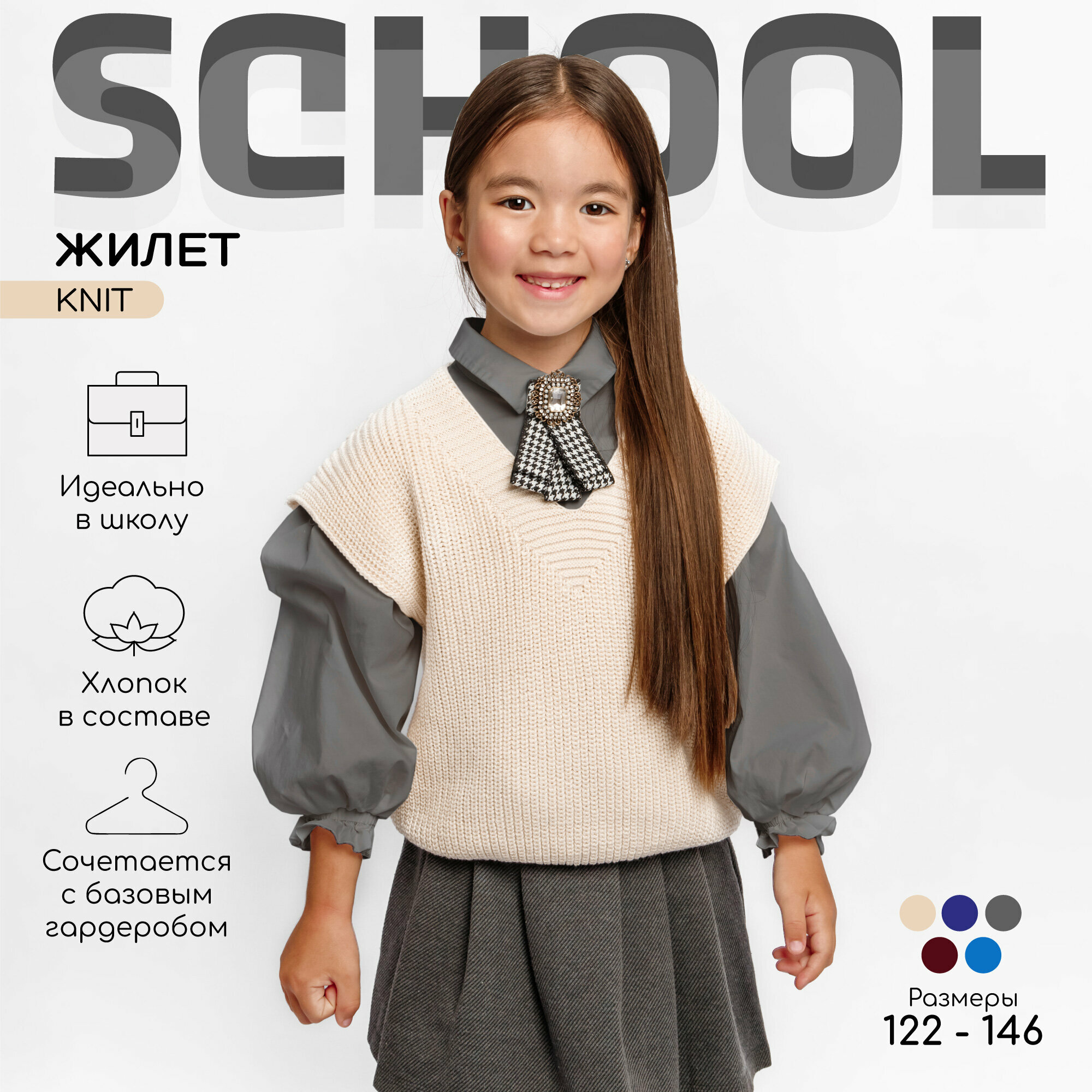 Школьный жилет Amarobaby, размер 146, молочный интересное: