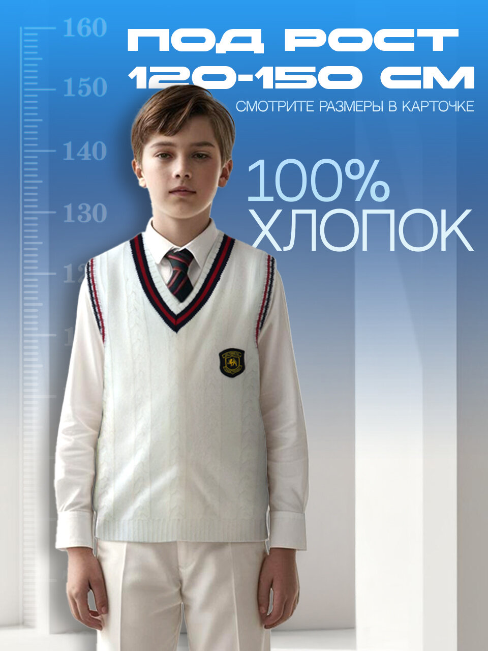 Школьный жилет 2beMan Базовая коллекция, размер 130, белый интересное:
