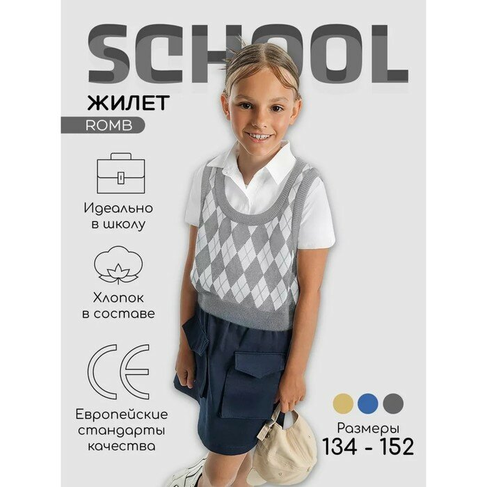 Школьный жилет Amarobaby, размер 134, серый/белый