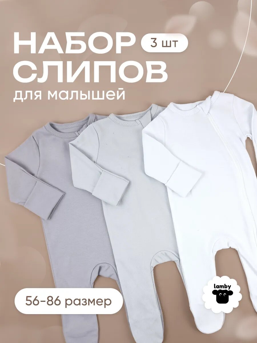 Купить Комбинезон lamby Базовая коллекция, закрытая стопа, комплект из 3 шт., размер 68, серый