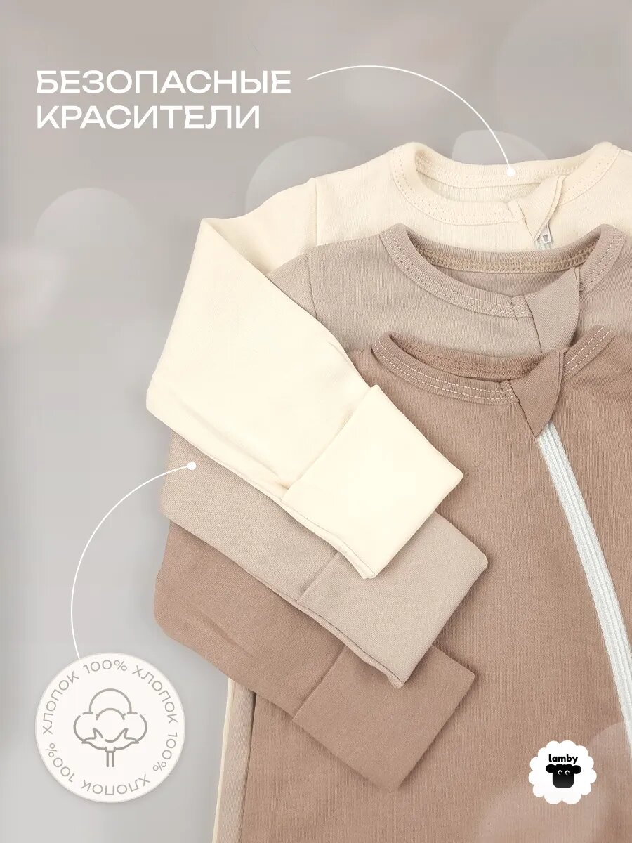 Комбинезон lamby базовая коллекция, закрытая стопа, комплект из 3 шт., размер 62, бежевый