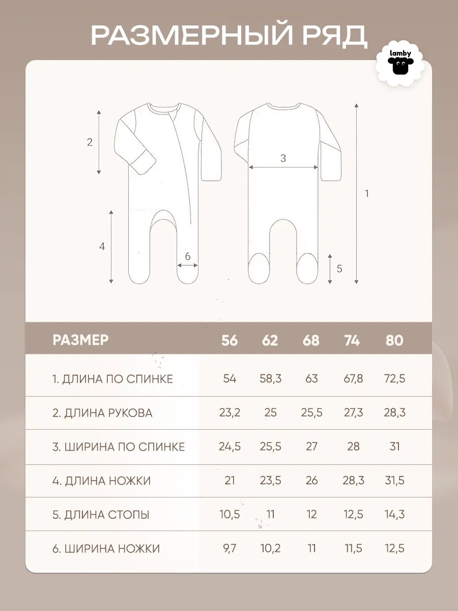 СохранитьКомбинезон lamby базовая коллекция, закрытая стопа, комплект из 3 шт., размер 74, бежевый интересное: