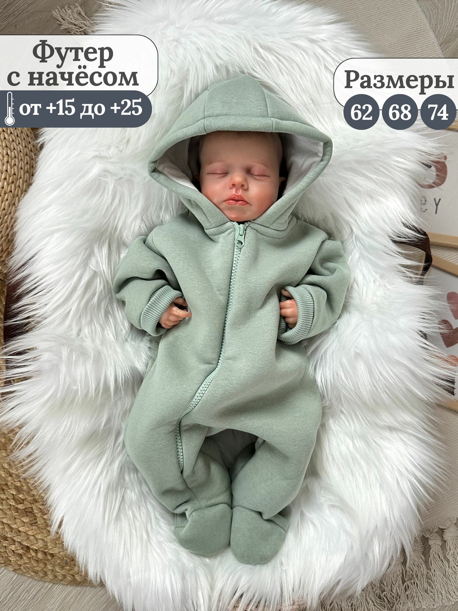 Комбинезон EKBBABY, размер 68, оливковый интересное: