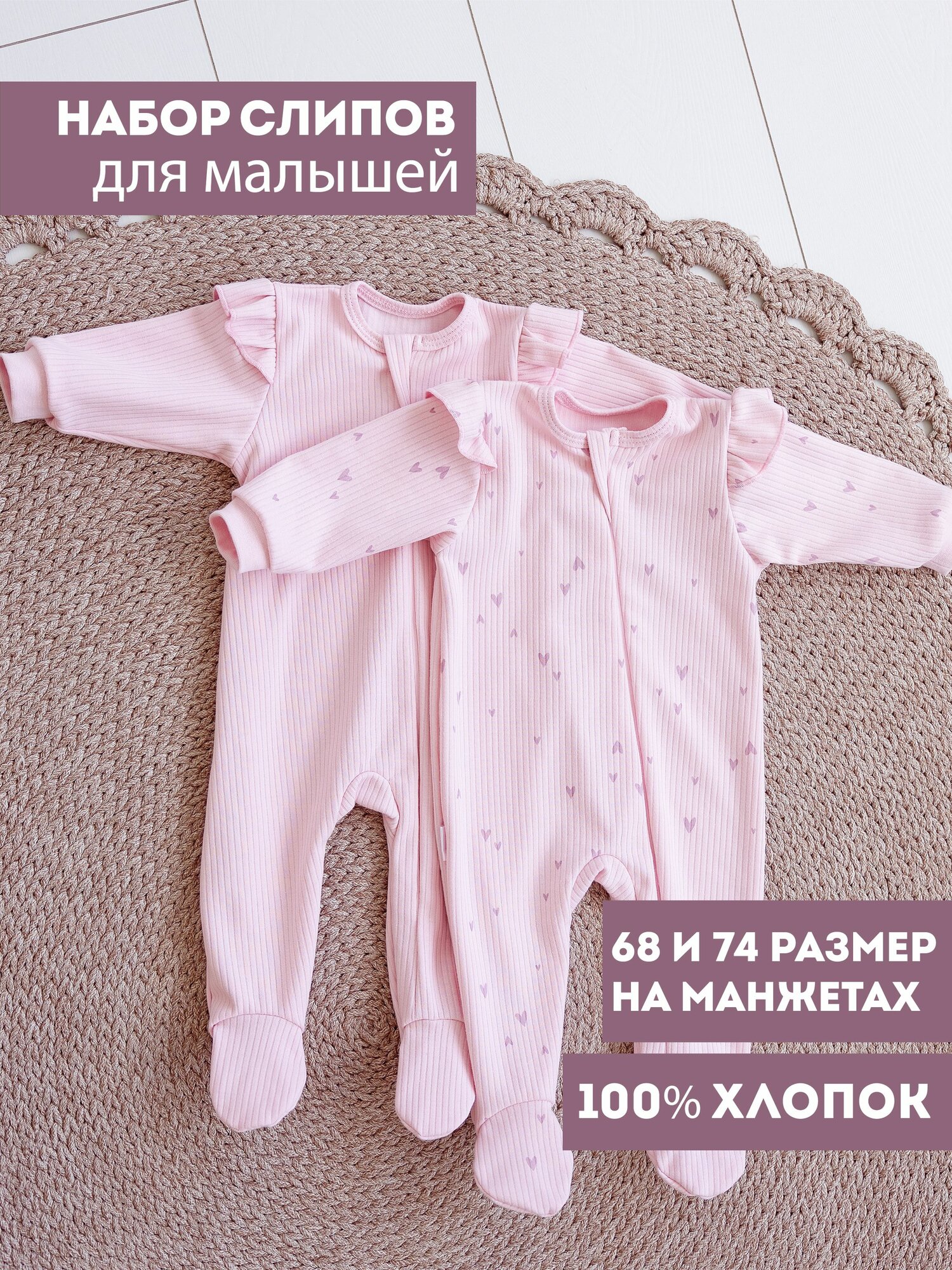 Комбинезон Bah Kids Новорожденка и малыши, открытая стопа, комплект из 2 шт., размер 68, розовый