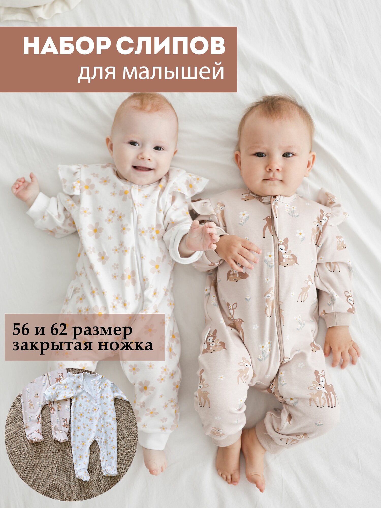 Комбинезон Bah Kids Осень-зима 2024, открытая стопа, комплект из 3 шт., размер 68, бежевый, коричневый, белый