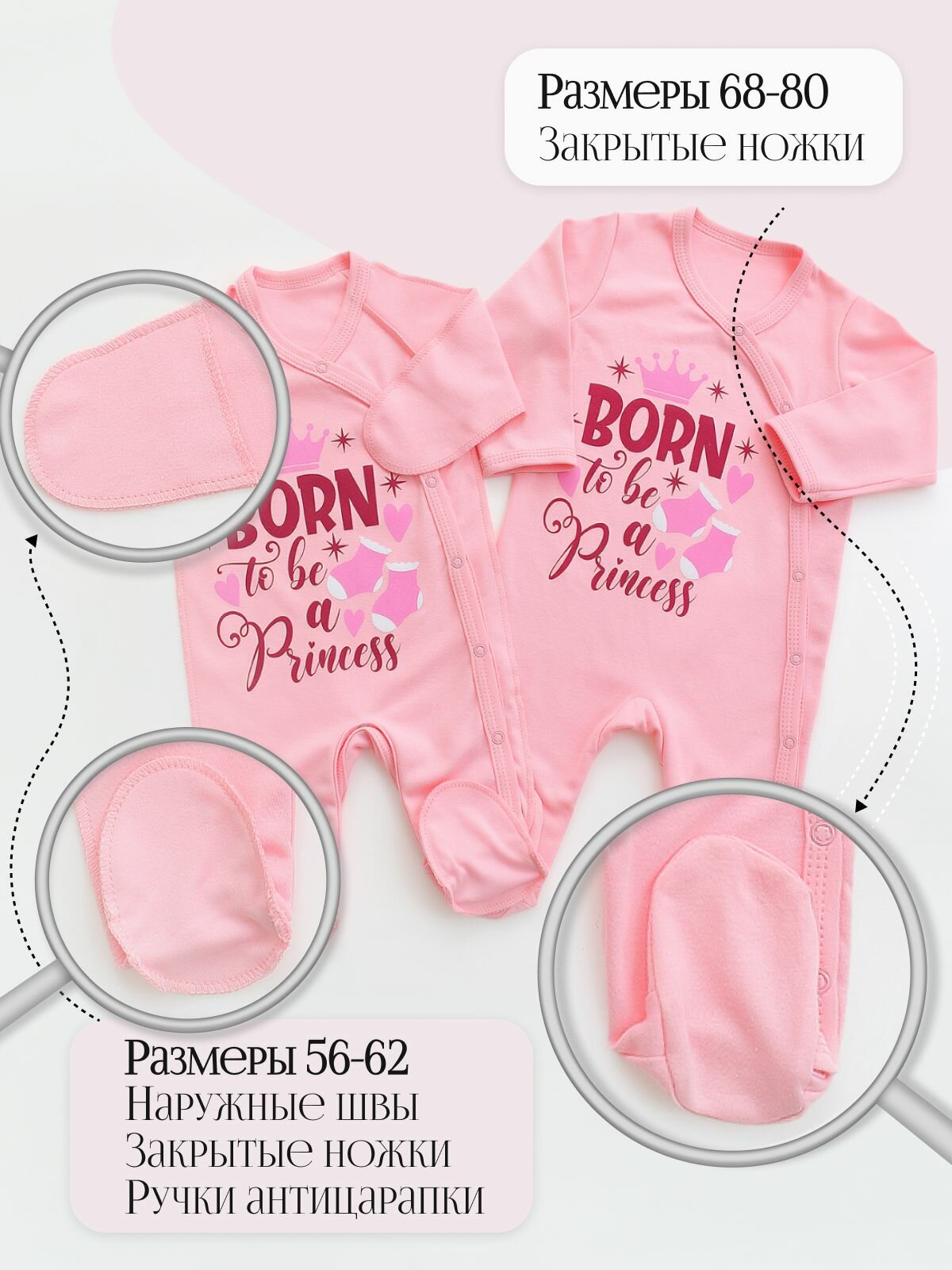 Купить Комбинезон BABYGLORY Little BOSS, закрытая стопа, комплект из 2 шт., размер 18-56, розовый/белый