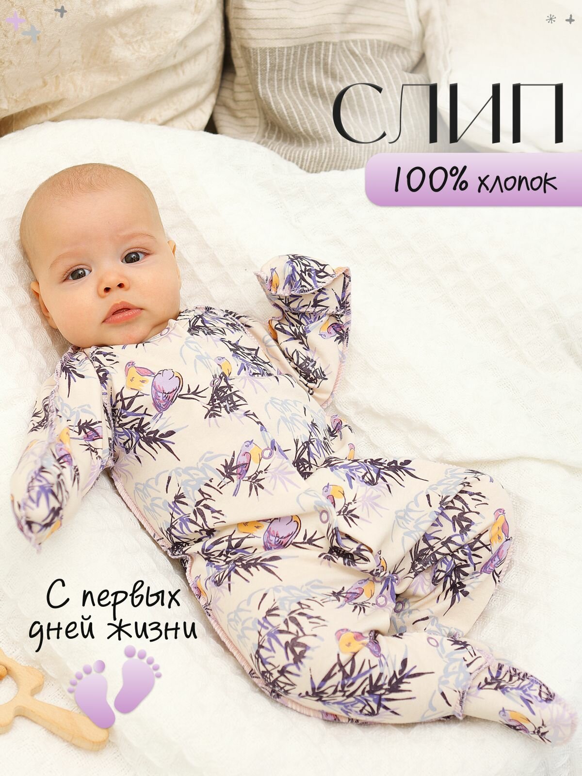 СохранитьКомбинезон BABYGLORY Райский сад, закрытая стопа, размер 18-56, молочный интересное: