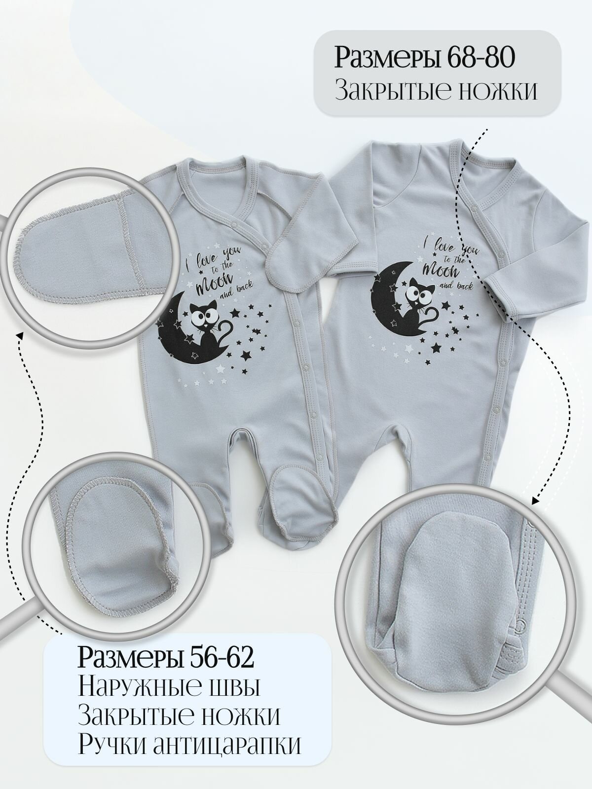 СохранитьКомбинезон BABYGLORY Little BOSS, закрытая стопа, комплект из 2 шт., размер 24-74, серый/белый интересное: