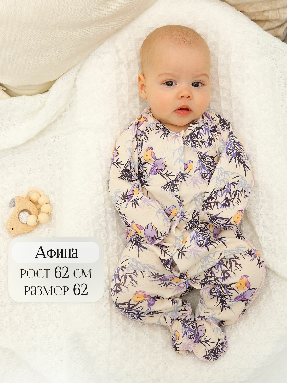 Комбинезон BABYGLORY Райский сад, закрытая стопа, размер 20-62, молочный