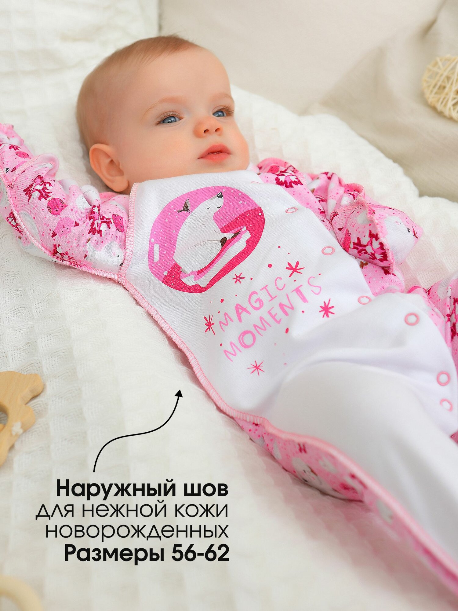 Комбинезон BABYGLORY Волшебные моменты, закрытая стопа, размер 56/62, розовый