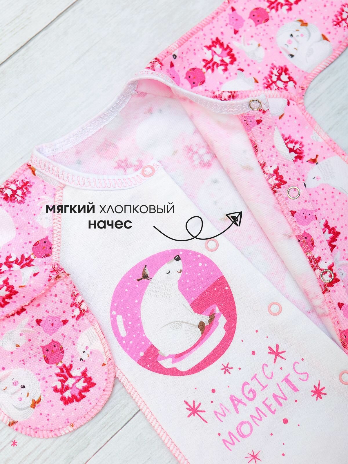 СохранитьКомбинезон BABYGLORY Волшебные моменты, закрытая стопа, размер 18-56, светло-розовый интересное: