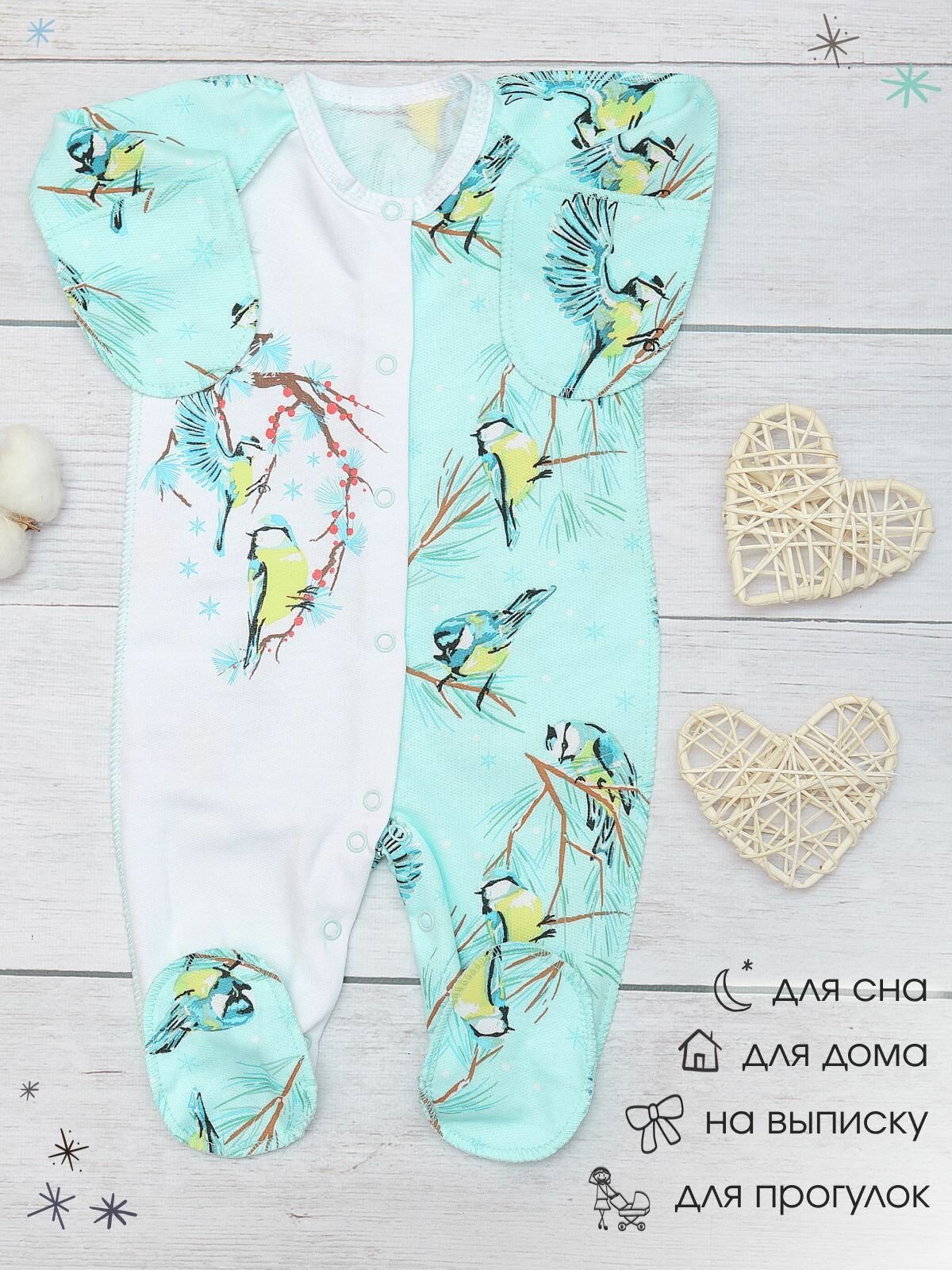 Комбинезон BABYGLORY Волшебные моменты, закрытая стопа, размер 56/62, зеленый