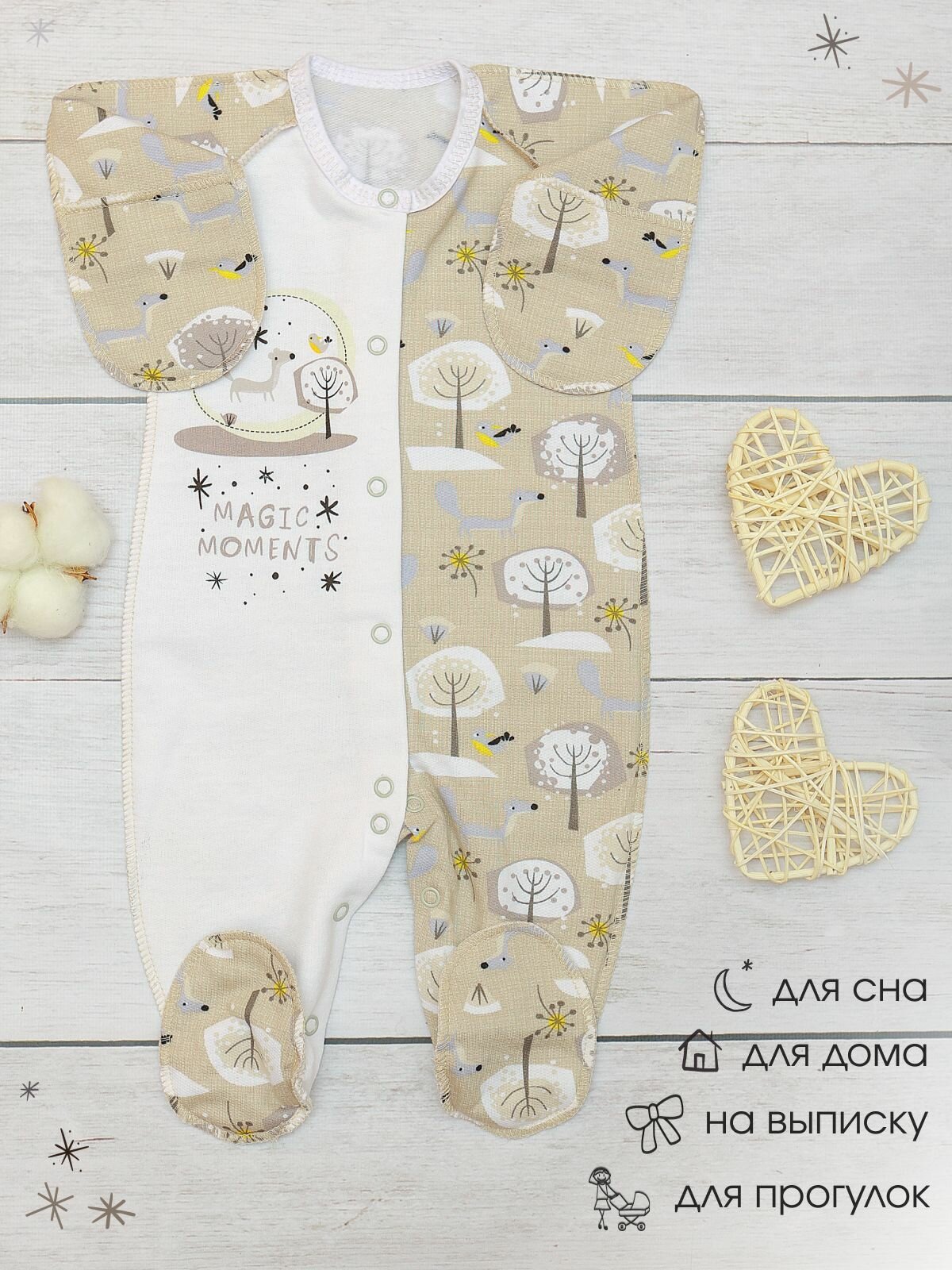 СохранитьКомбинезон BABYGLORY Волшебные моменты, закрытая стопа, размер 18-56, бежевый интересное: