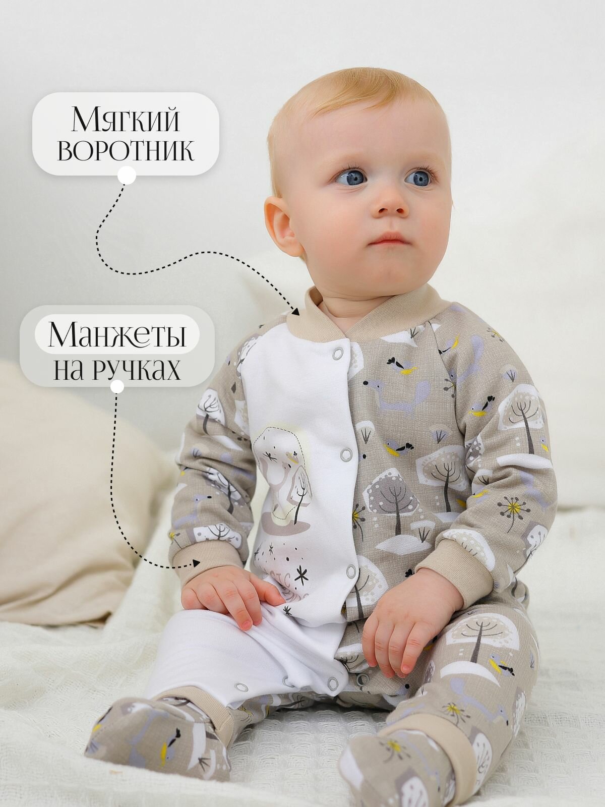 СохранитьКомбинезон BABYGLORY Волшебные моменты, закрытая стопа, размер 24-74, коричневый интересное: