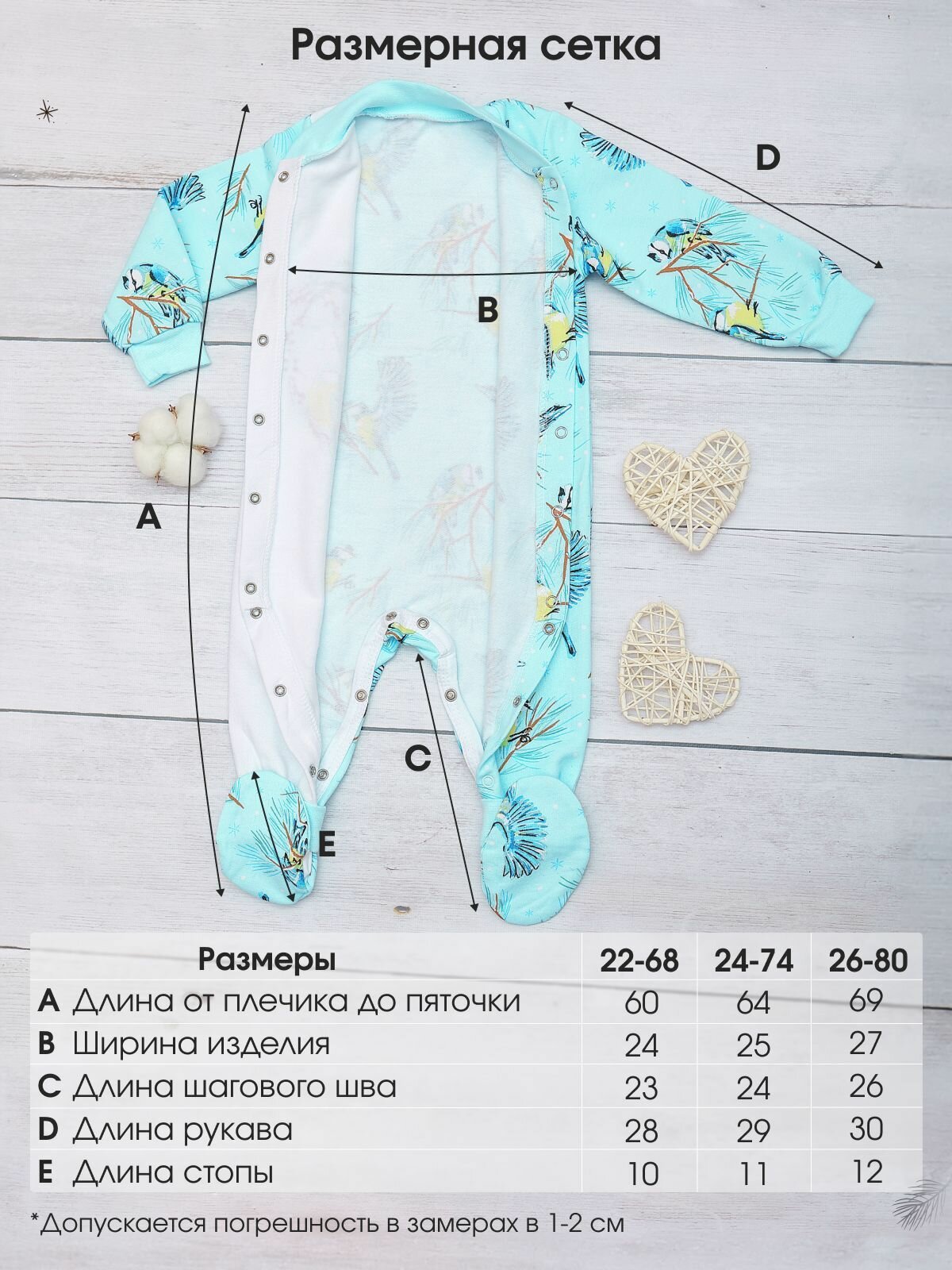 Комбинезон BABYGLORY Зимняя сказка, закрытая стопа, размер 16-50, ментоловый