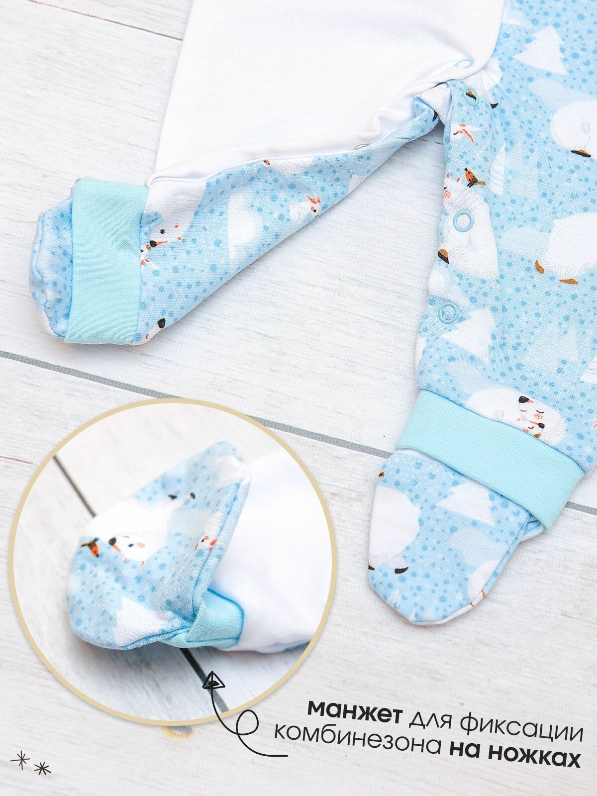 Комбинезон BABYGLORY Зимняя сказка, закрытая стопа, размер 16-50, ментоловый
