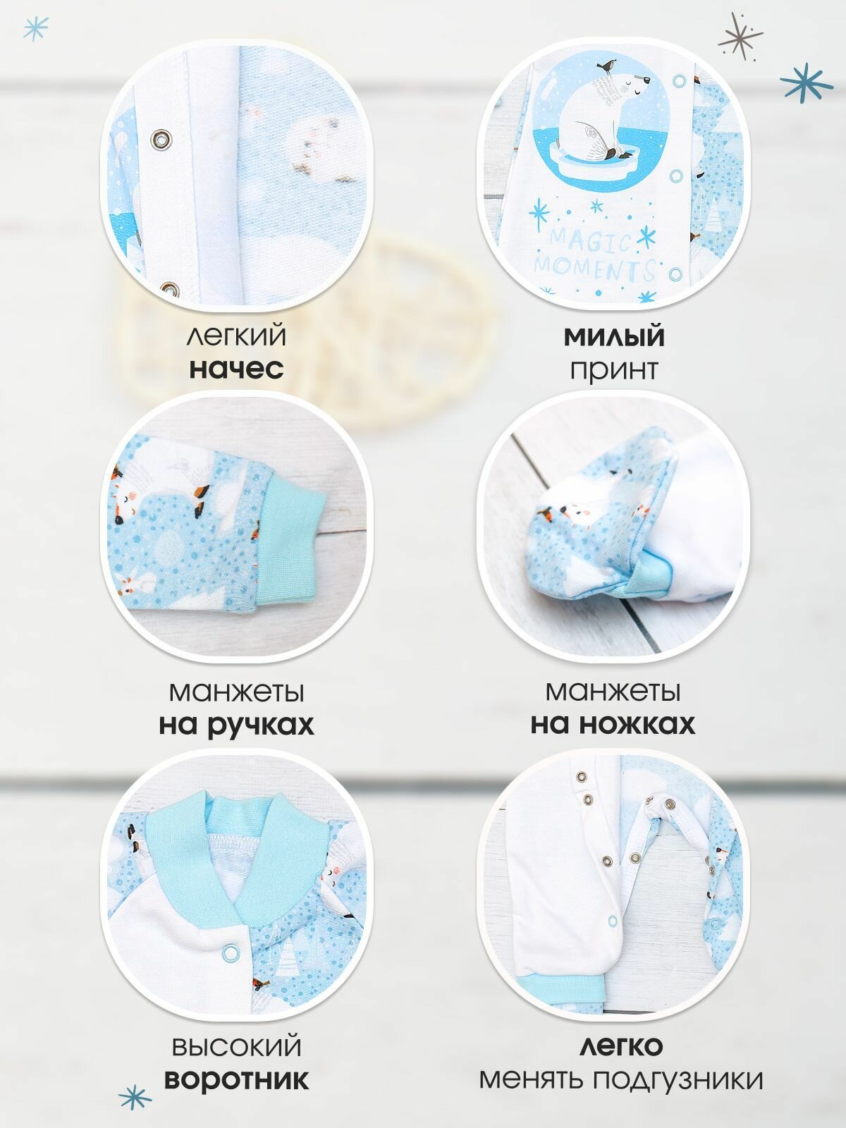 СохранитьКомбинезон BABYGLORY Волшебные моменты, закрытая стопа, размер 56/62, cиний интересное: