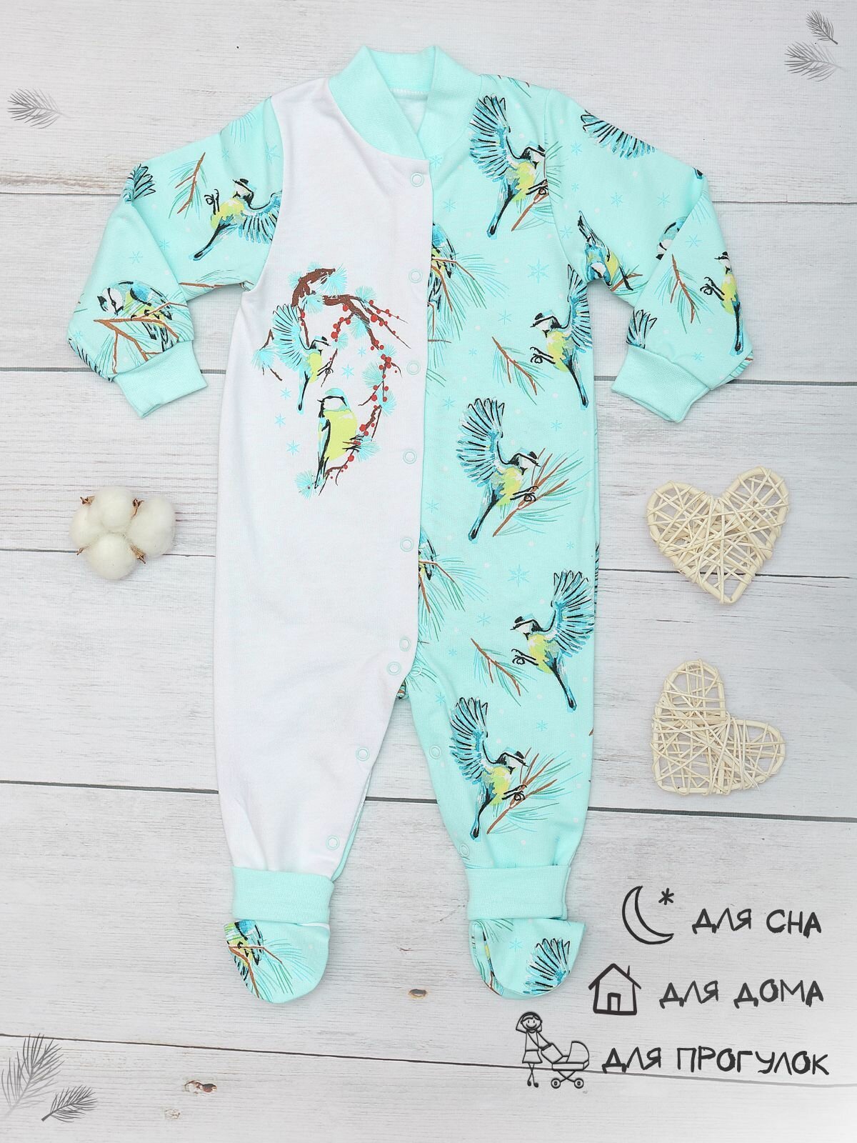 Комбинезон BABYGLORY Зимняя сказка, закрытая стопа, размер 18-56, ментоловый