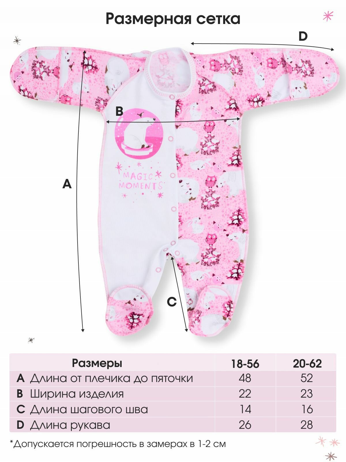 Комбинезон BABYGLORY Волшебные моменты, закрытая стопа, размер 56/62, розовый