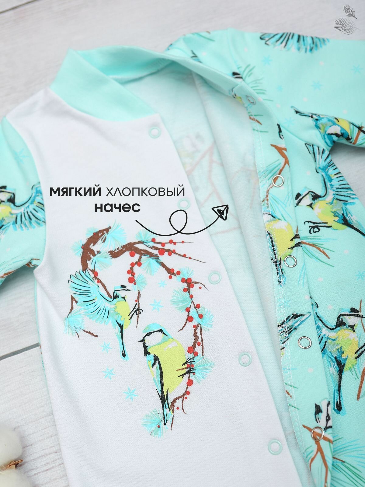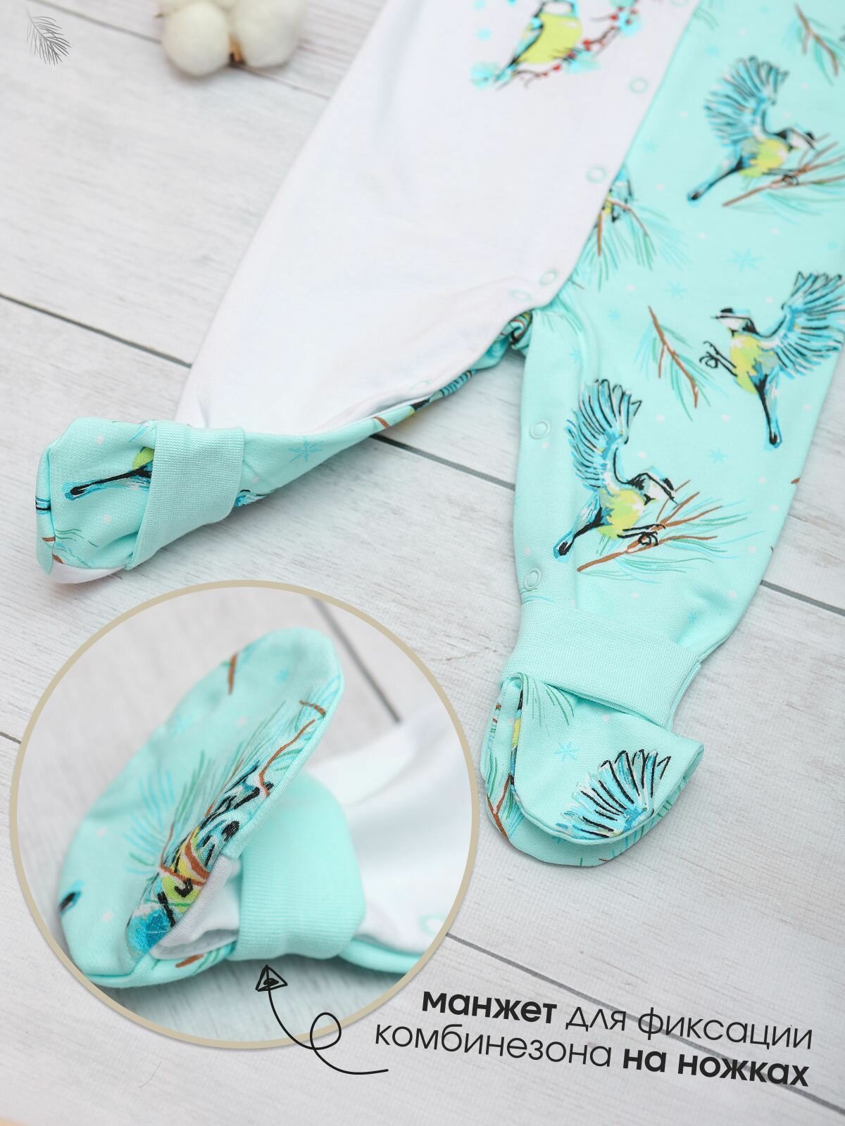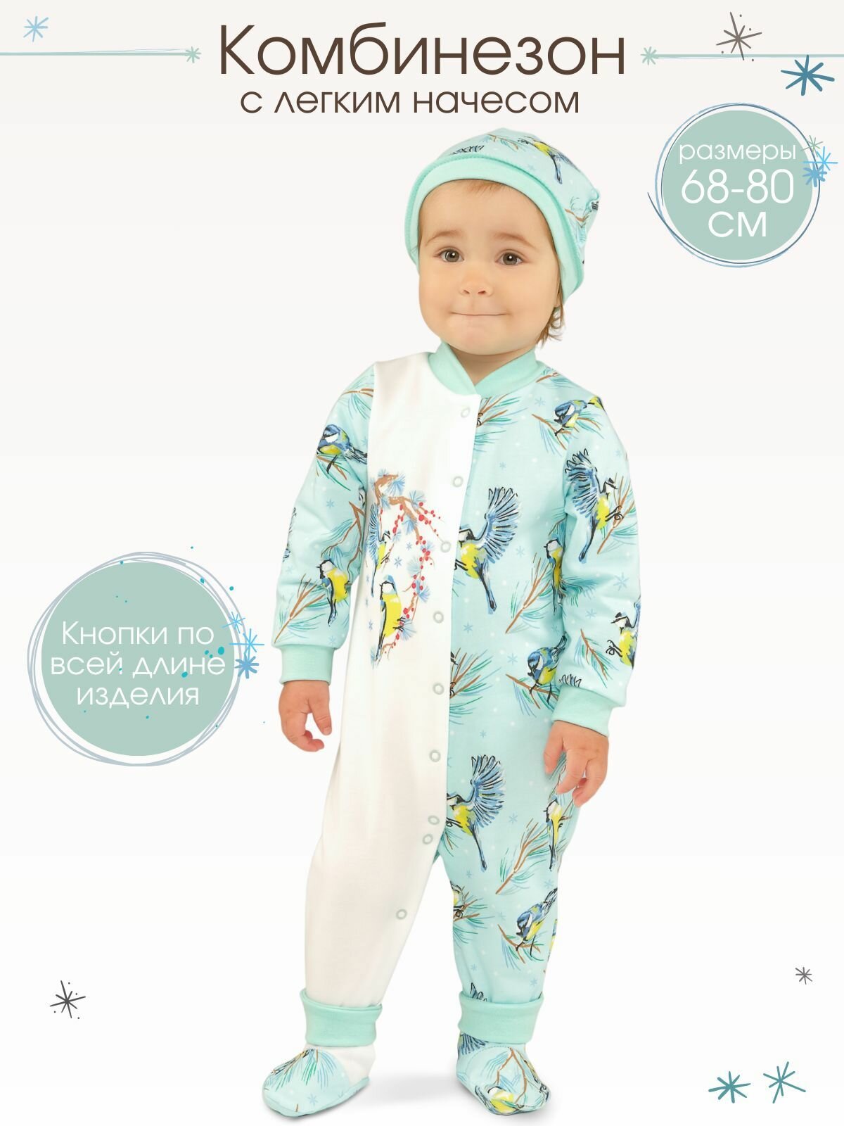 Комбинезон BABYGLORY Зимняя сказка, закрытая стопа, размер 16-50, ментоловый