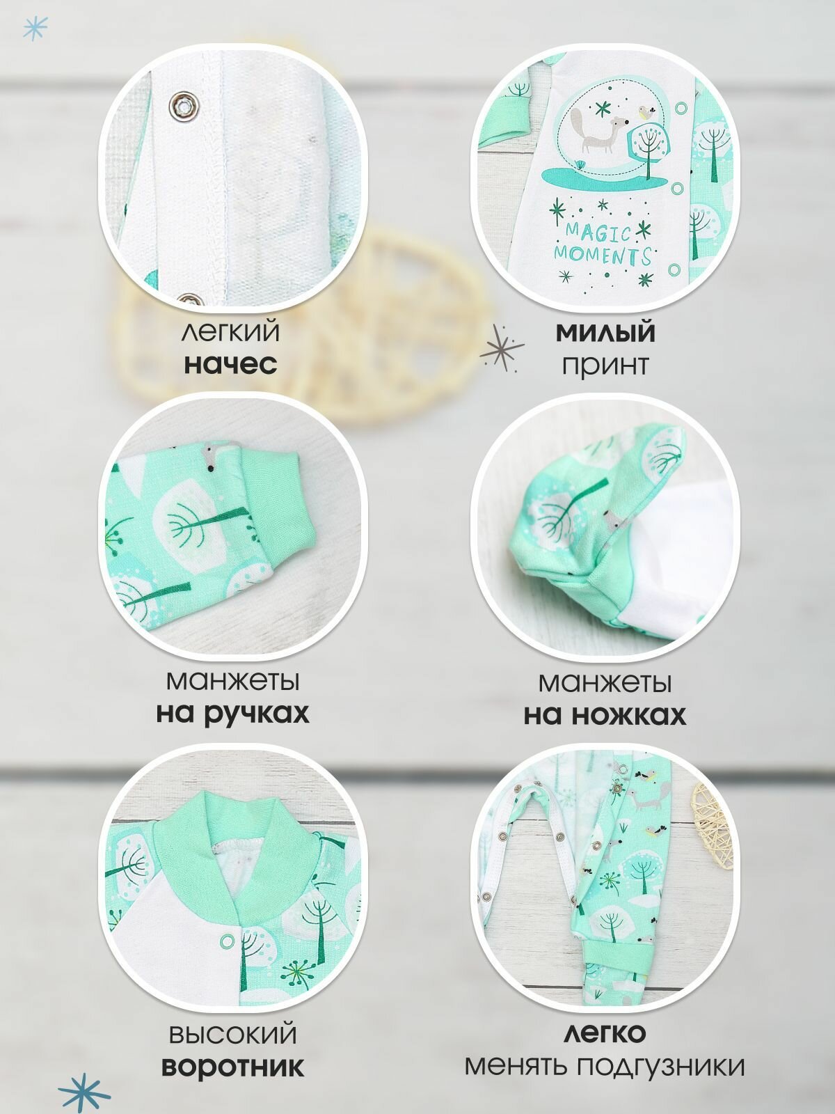 Купить Комбинезон BABYGLORY Волшебные моменты, закрытая стопа, размер 56/62, зеленый
