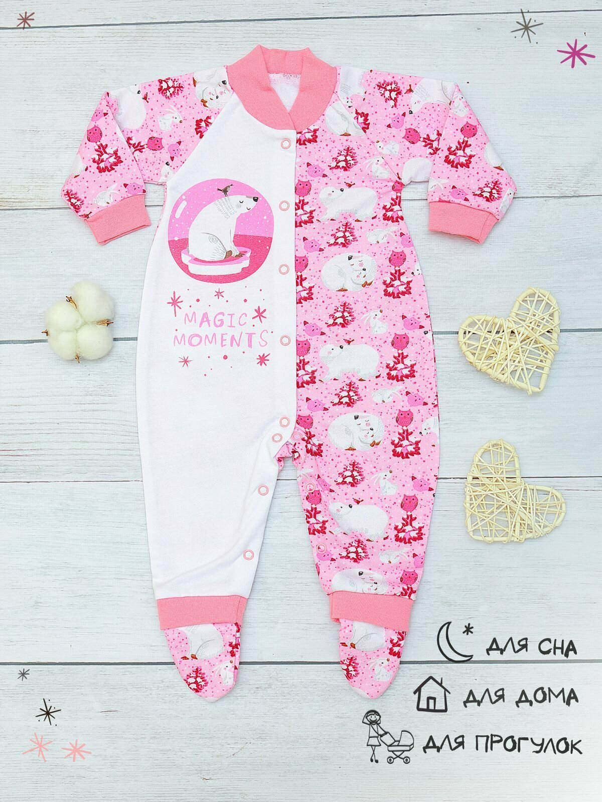 Комбинезон BABYGLORY Волшебные моменты, закрытая стопа, размер 24-74, розовый