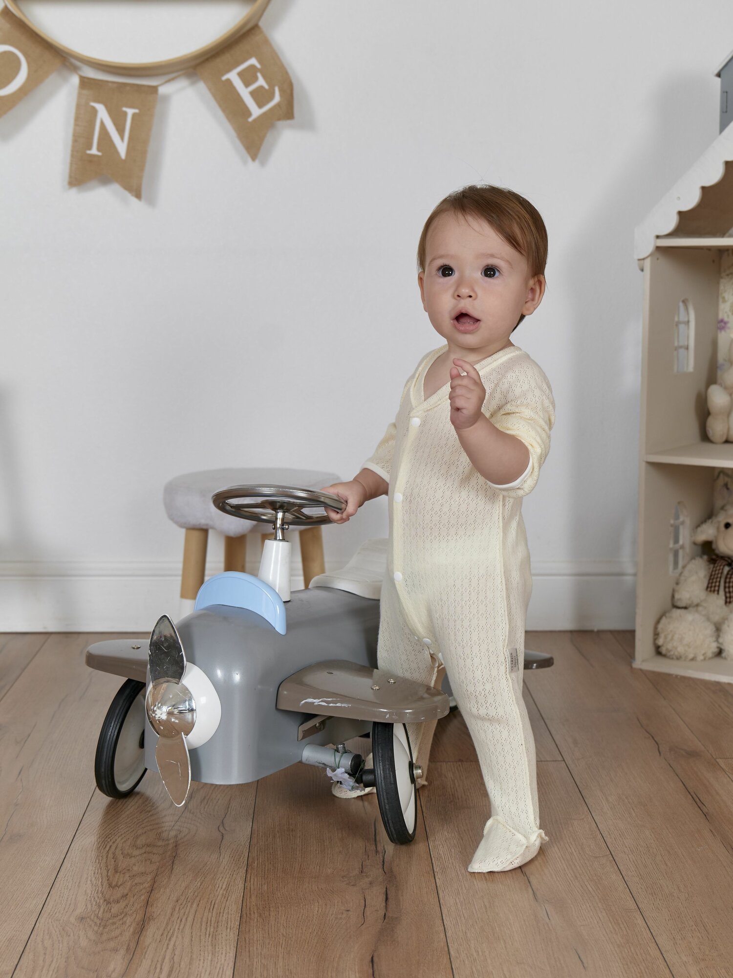 Комбинезон Clariss Весна-лето 2024, закрытая стопа, размер 26 (80-86) 9-18 мес., белый, желтый, бежевый