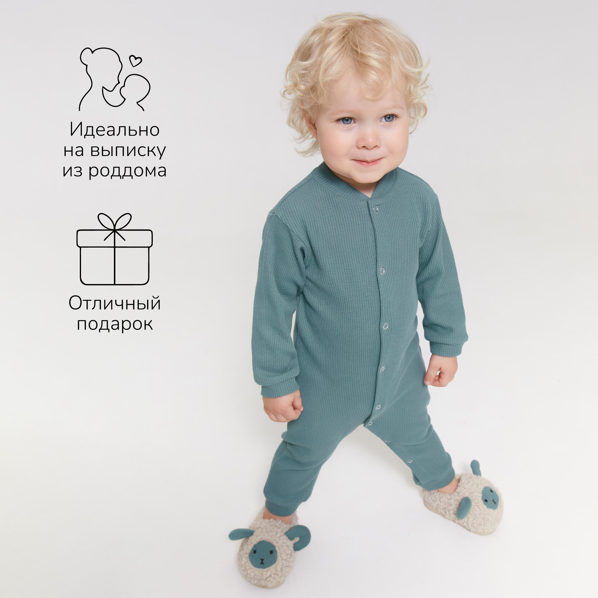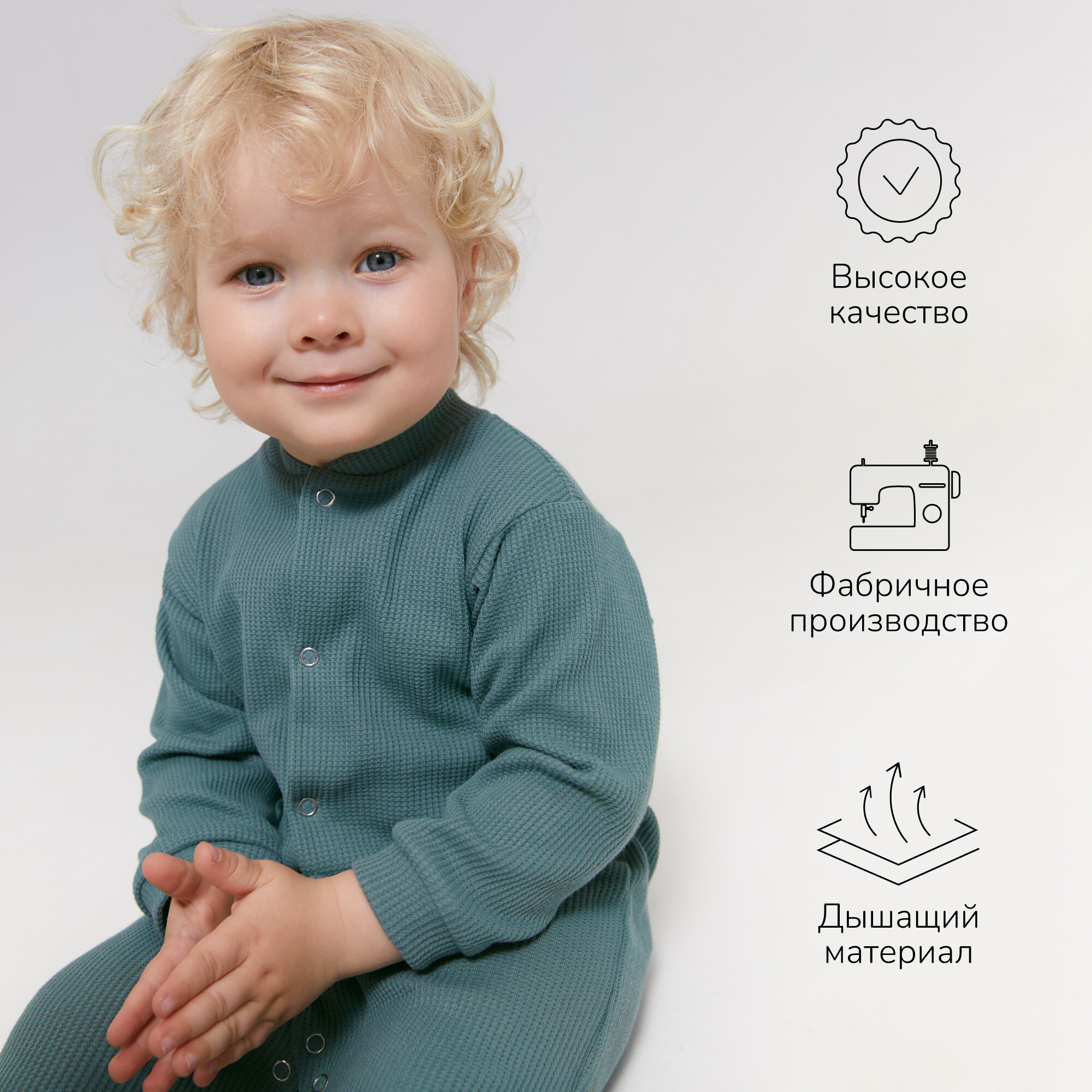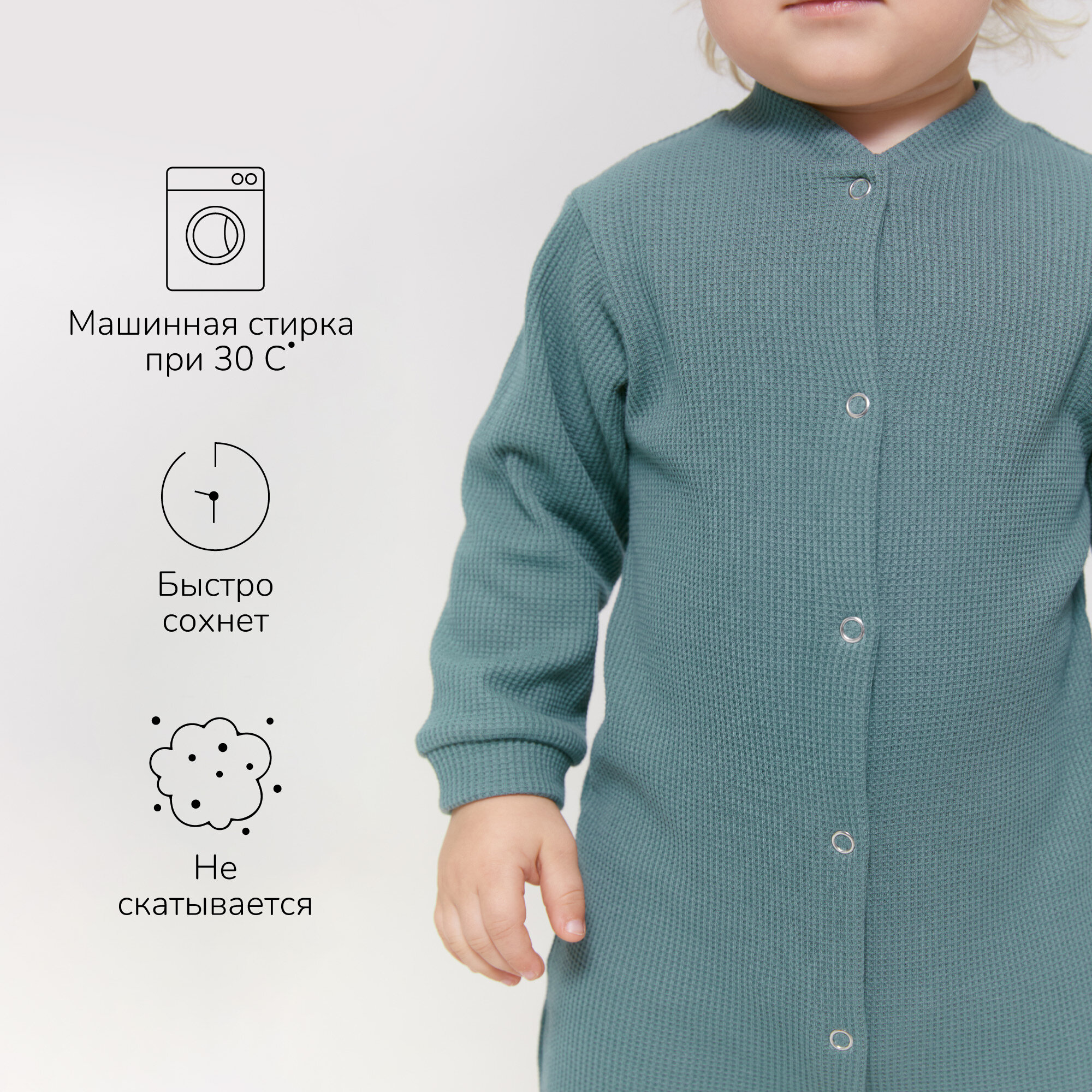 Комбинезон Amarobaby Waffle, открытая стопа, размер 62, зелeный интересное: